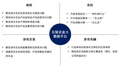 县级安博官方网站平台作为布瑞克农产品数据库重要的落地应用及信息来源建设,是安博官方网站业务发展的重要战略方向,具有以点带面的作用。据初步估算,一个县能够给数据平台贡献的终端用户就达千个以上,且每个用户均具备较大的商业潜力。